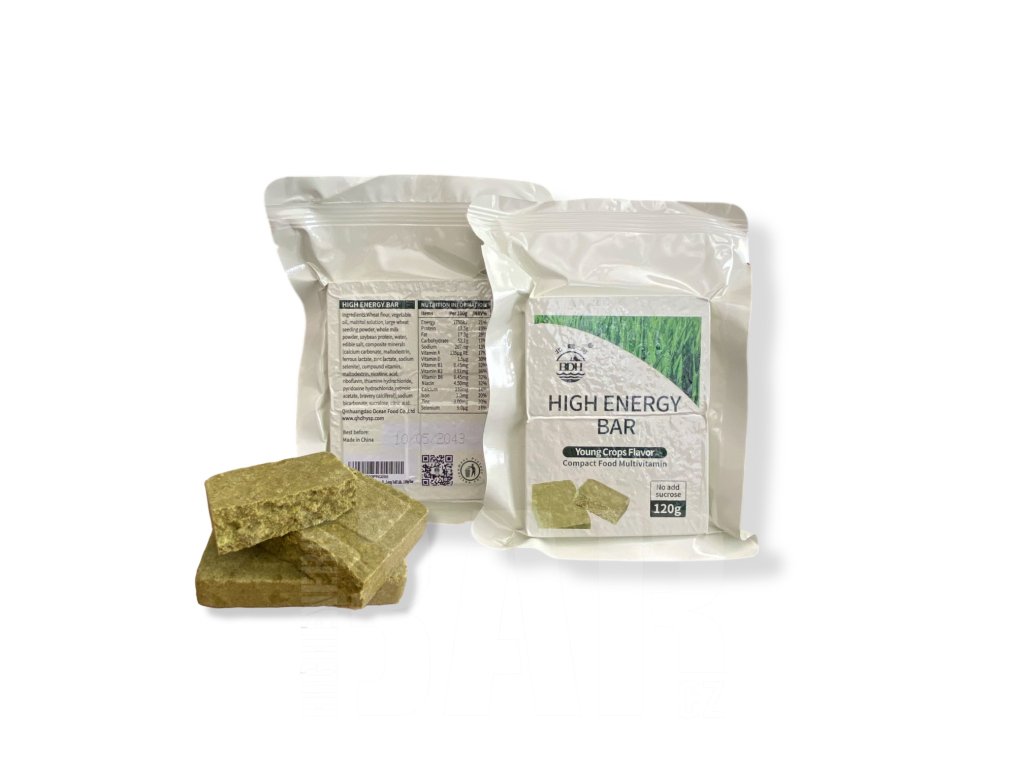 Vysokoenergetická komprimovaná sušenka Young Crops určená jako nouzová strava pro krizové situace, blackouty, evakuační zavazadla a dlouhodobé nouzové zásoby. Varianta bez přidaného cukru, založená na mladých obilovinách a přírodních surovinách, poskytuje stabilní a dlouhodobý přísun energie bez rychlých výkyvů.